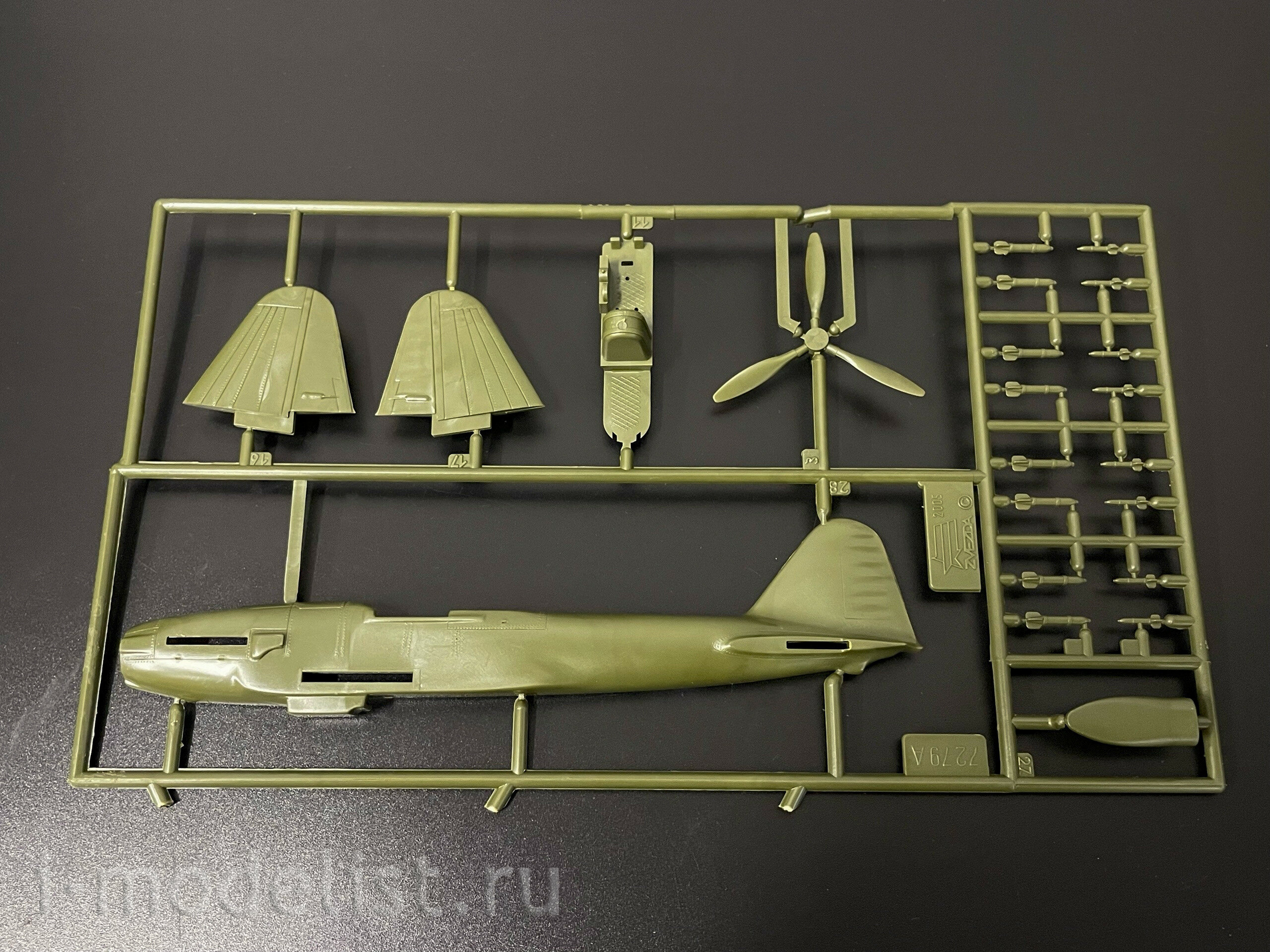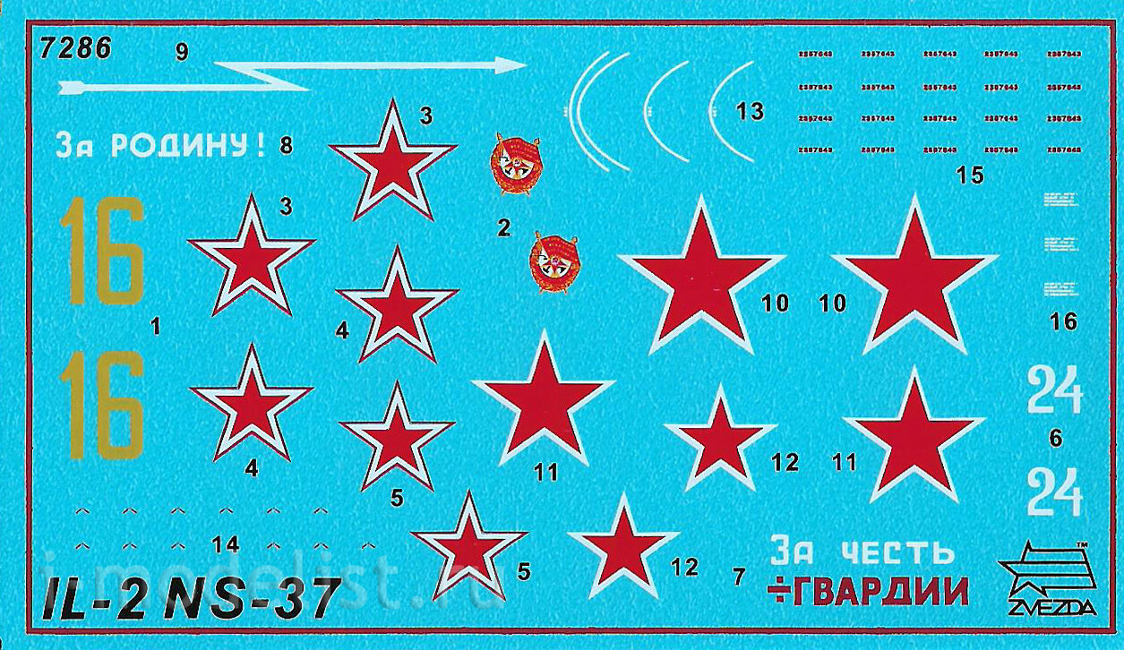 Историческая справка: Ил-2, оснащенный пушками НС-37, широко применялся во время битвы на Курской дуге.Особенно эффективным было применение Ил-2 НС-37 против скоплений бронетехники и мотопехоты противника. Снаряды мощной 37мм пушки были способны поражать самые современные танки противника. В бомбовую зарядку самолёта Ил-2 входило до 192 авиабомб ПТА Б-2,5-1,5. Попадание хотя бы одной такой бомбы в танк противника приводило к его уничтожению. Набор деталей из пластмассы для сборки одной модели самолета.