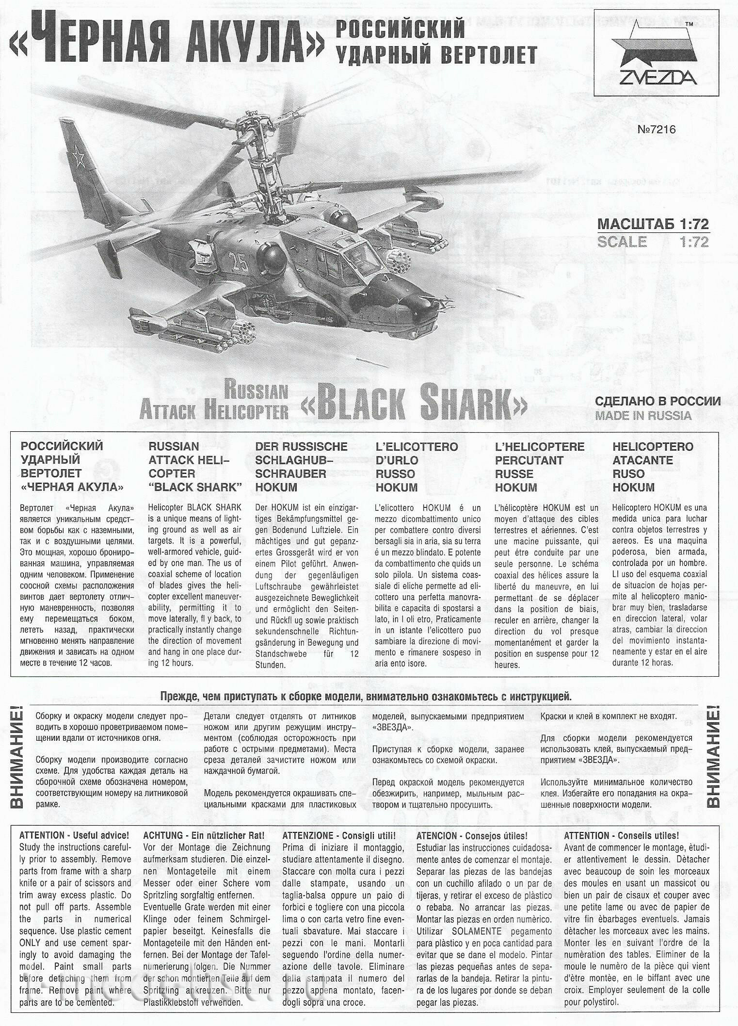 7216ПН Звезда 1/72 Подарочный набор: Российский ударный вертолет "Черная акула"