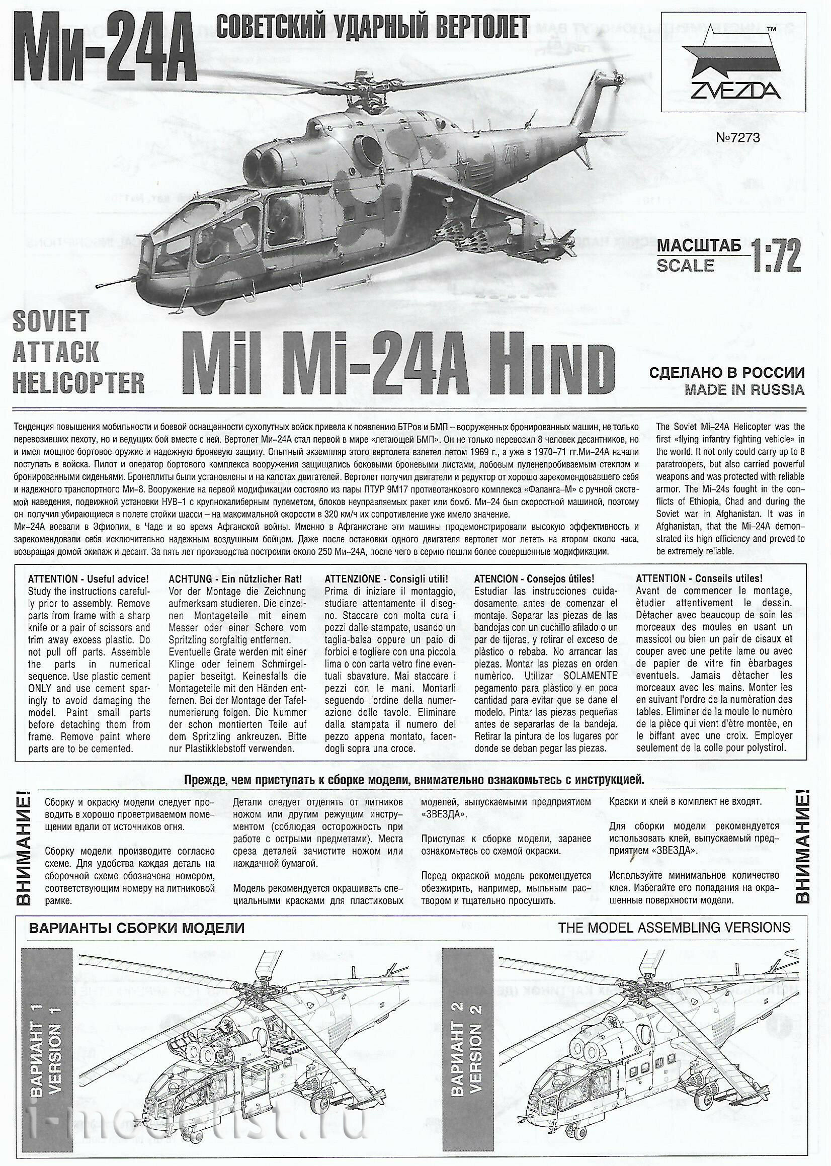 7273ПН Звезда 1/72 Подарочный набор: Советский ударный вертолет Ми-24А