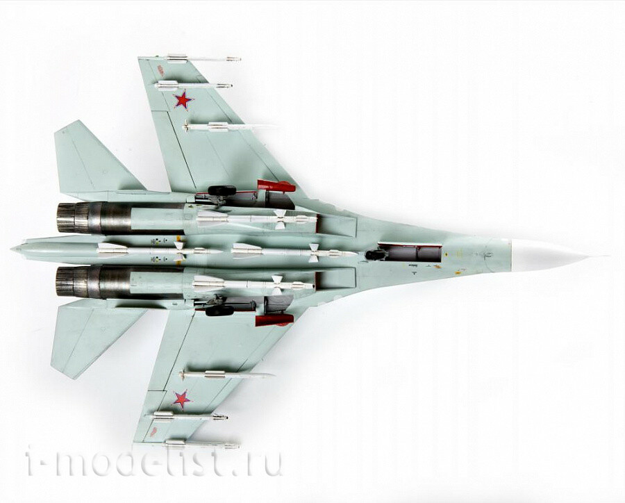 Российский многоцелевой истребитель завоевания превосходства в воздухе Су-27СМ. Абсолютно новая модель собственной разработки! При проектировании использовались оригинальные чертежи КБ “Сухого”. Добавив к этому самые передовые технологии производства, мы получили модель высочайшего качества и копийности. Су-27СМ могут наносить удары по наземным целям с использованием высокоточного оружия. Самолёты получили новые двигатели с существенно большим ресурсом и мощностью, были обновлены оборудование и комплексы вооружения, улучшена эргономика кабины пилота. Истребитель способен применять ракеты класса «воздух-воздух», ракеты «воздух-поверхность» с лазерным наведением и другие, а также корректируемые авиабомбы.