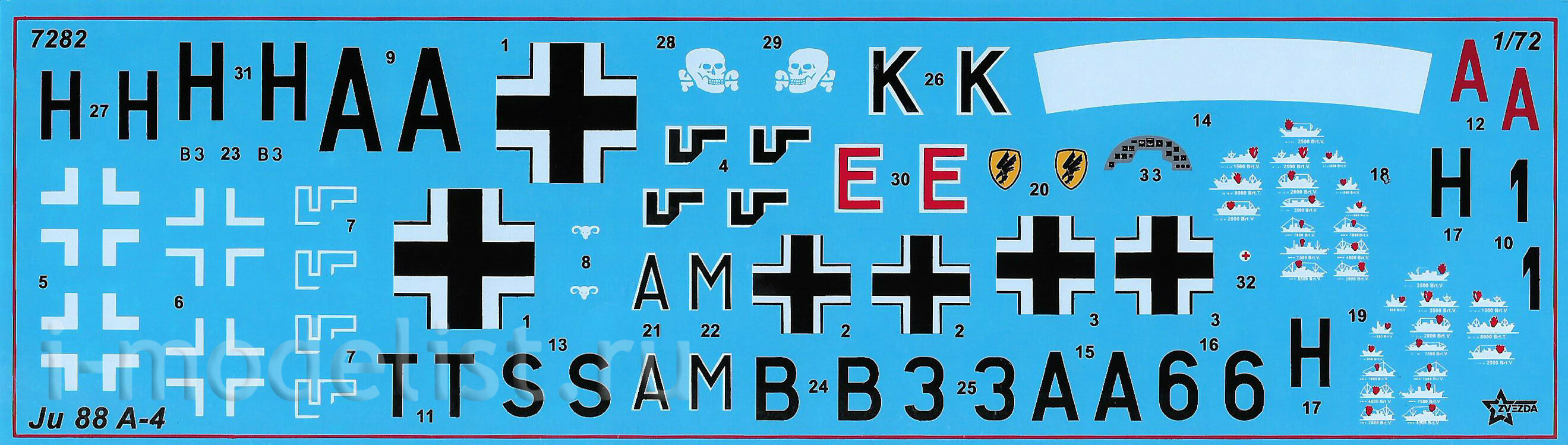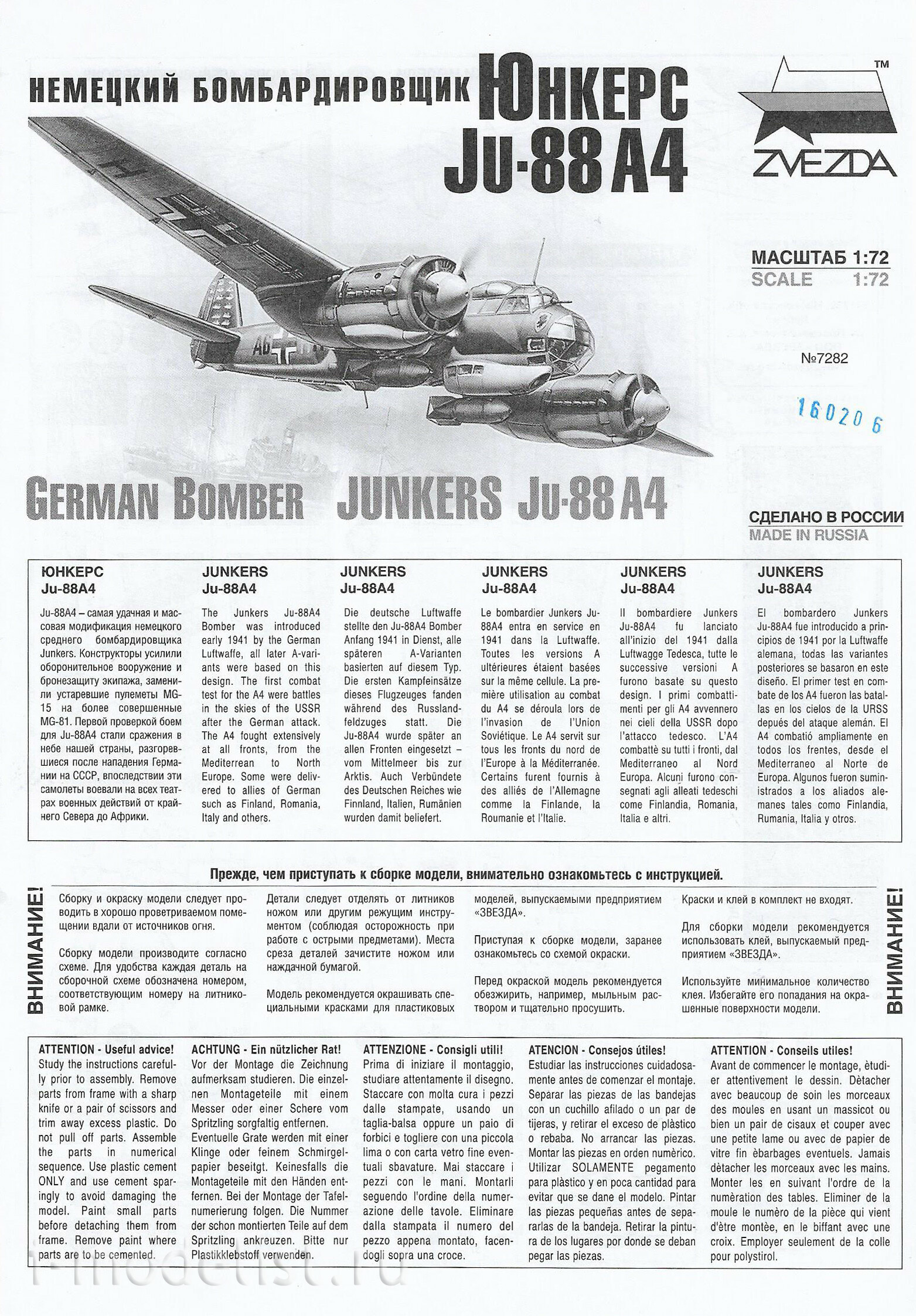 7282 Звезда 1/72 Немецкий бомбардировщик Юнкерс Ju-88 А-4