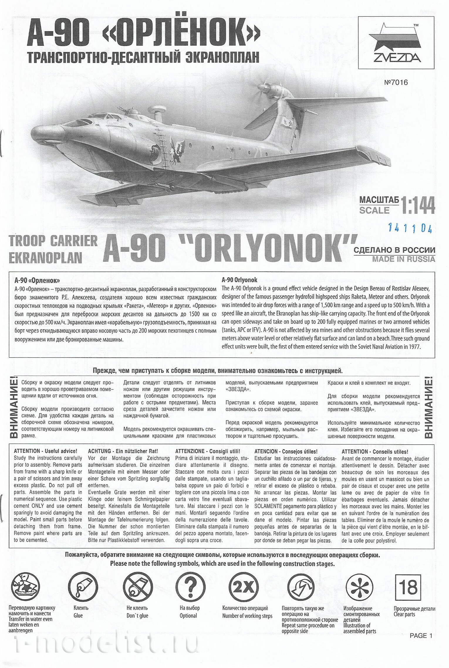 7016 Звезда 1/144 Транспортно-десантный экраноплан А-90 "Орлёнок"