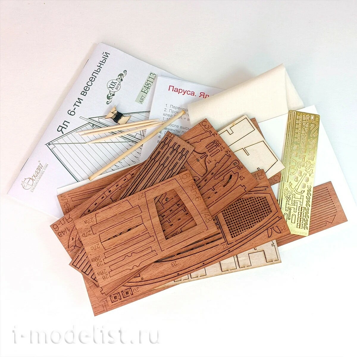 Материалы: шпон анегри, фототравление, фанера, переклейка, ткань для парусов, заготовки рангоута.