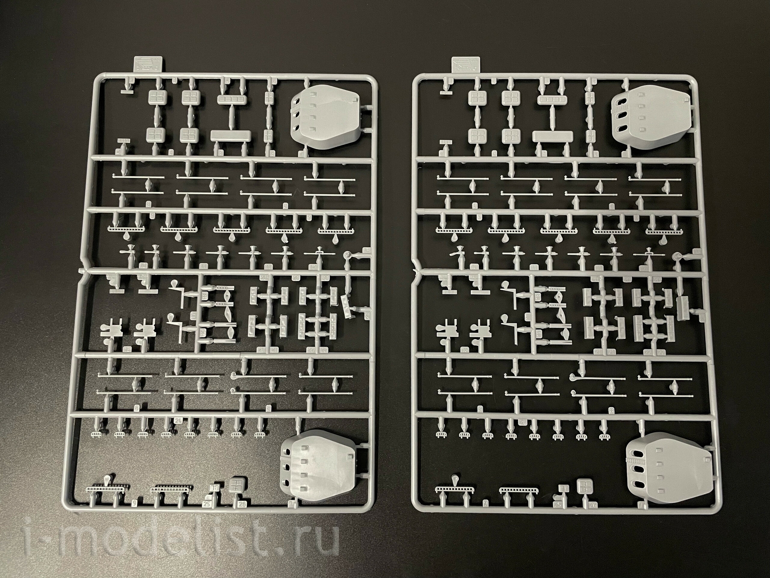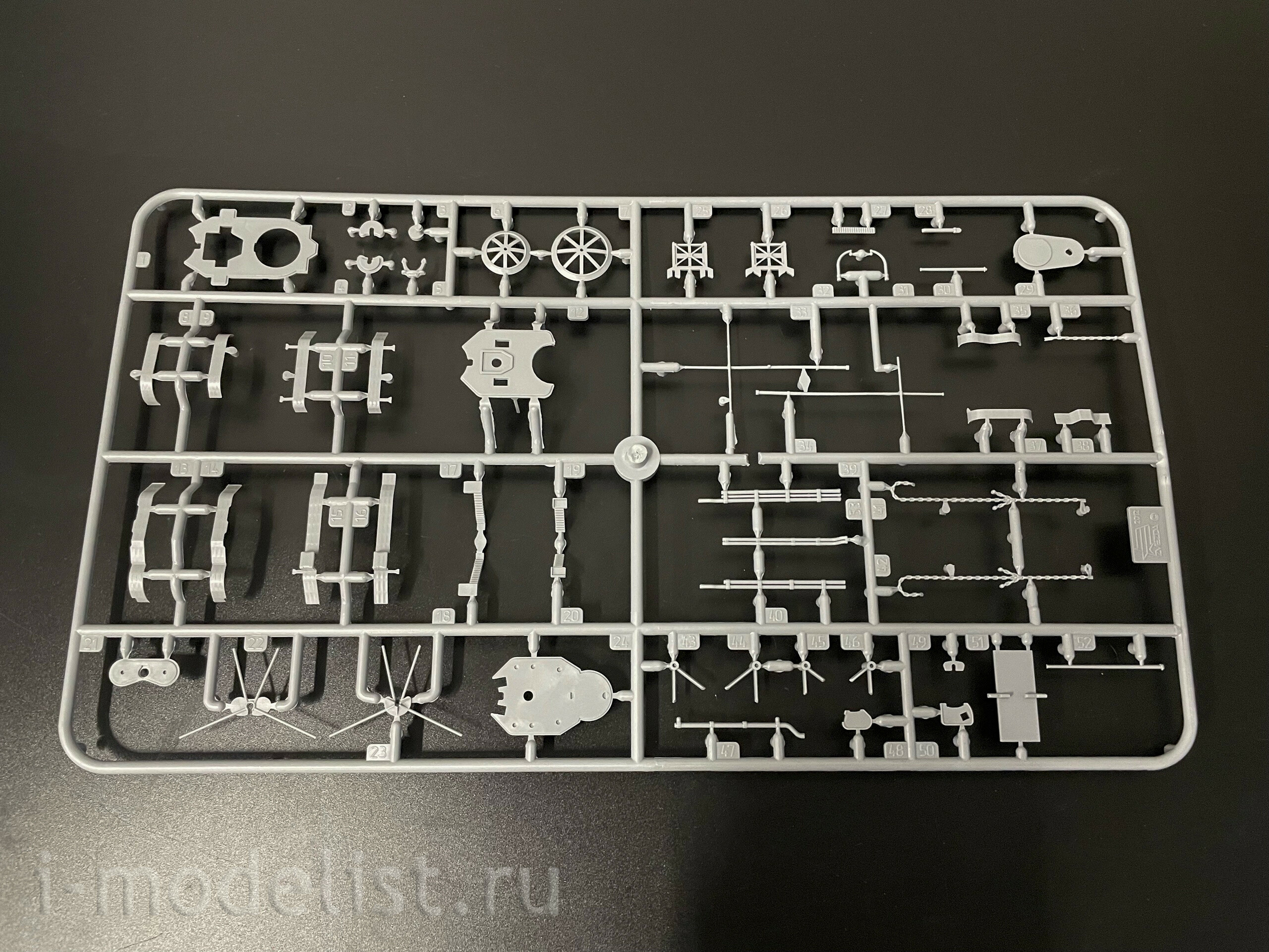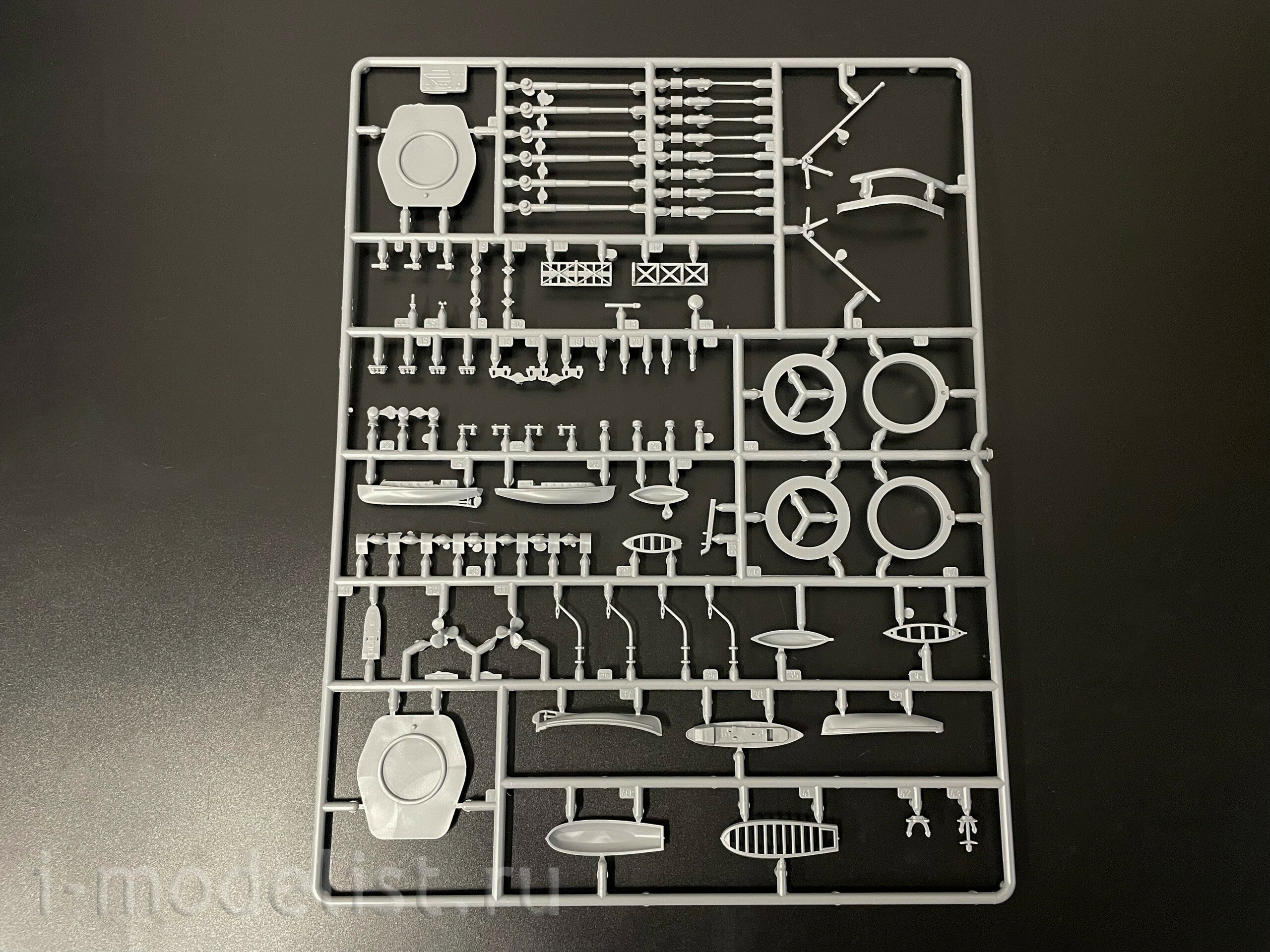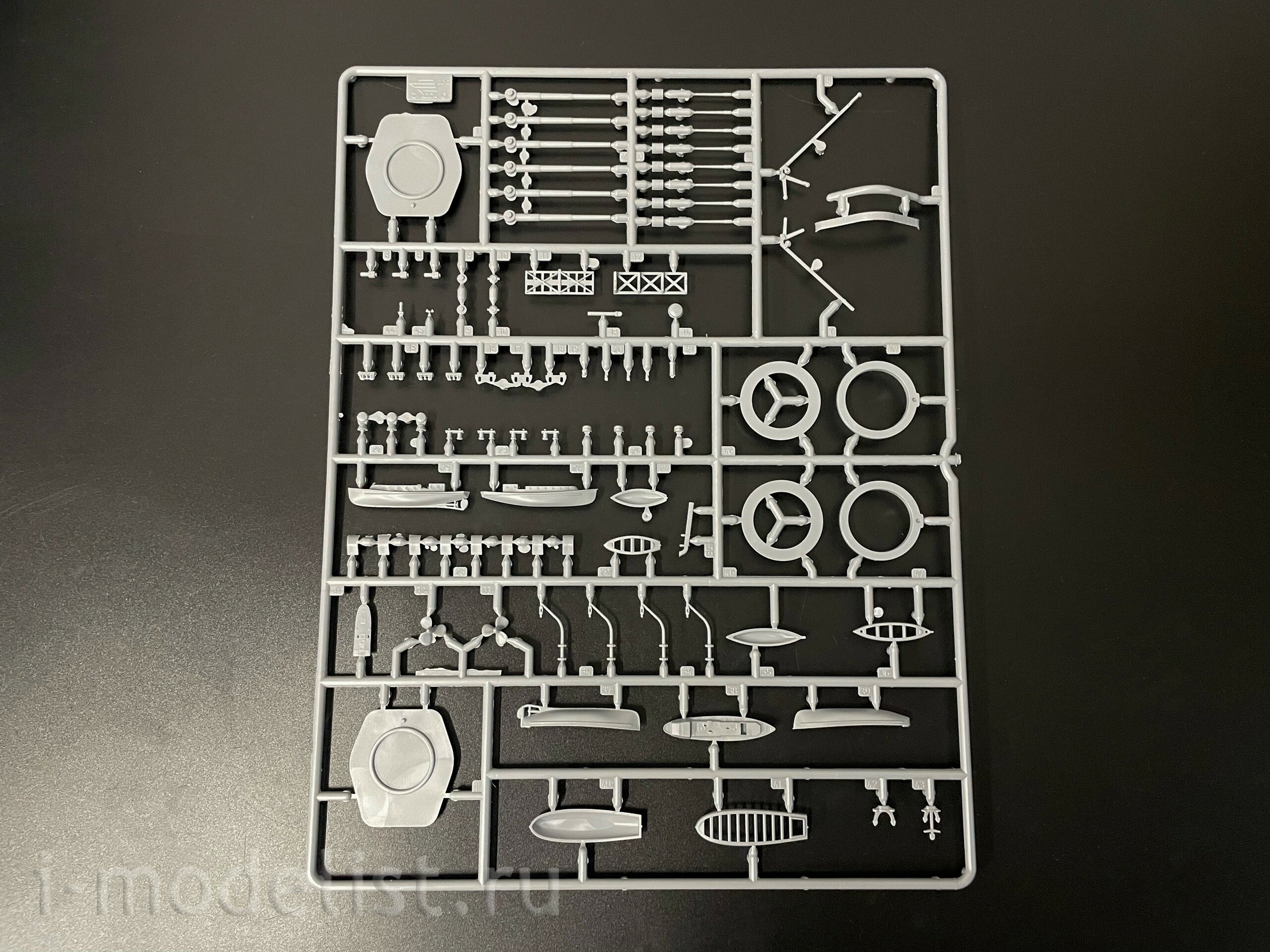 Набор деталей из пластмассы для сборки одной модели корабля.