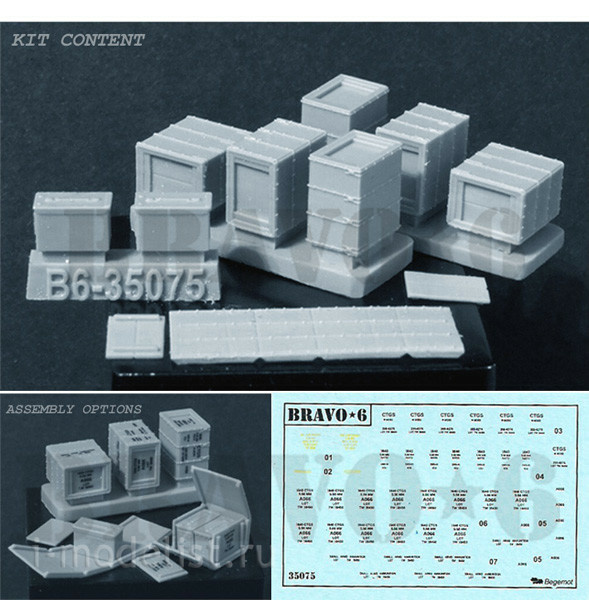 B6-35075 Bravo-6 1/35 U.S. M2A1 Ammo Boxes and Crates / Коробки и ящики с боеприпасами M2A1 США