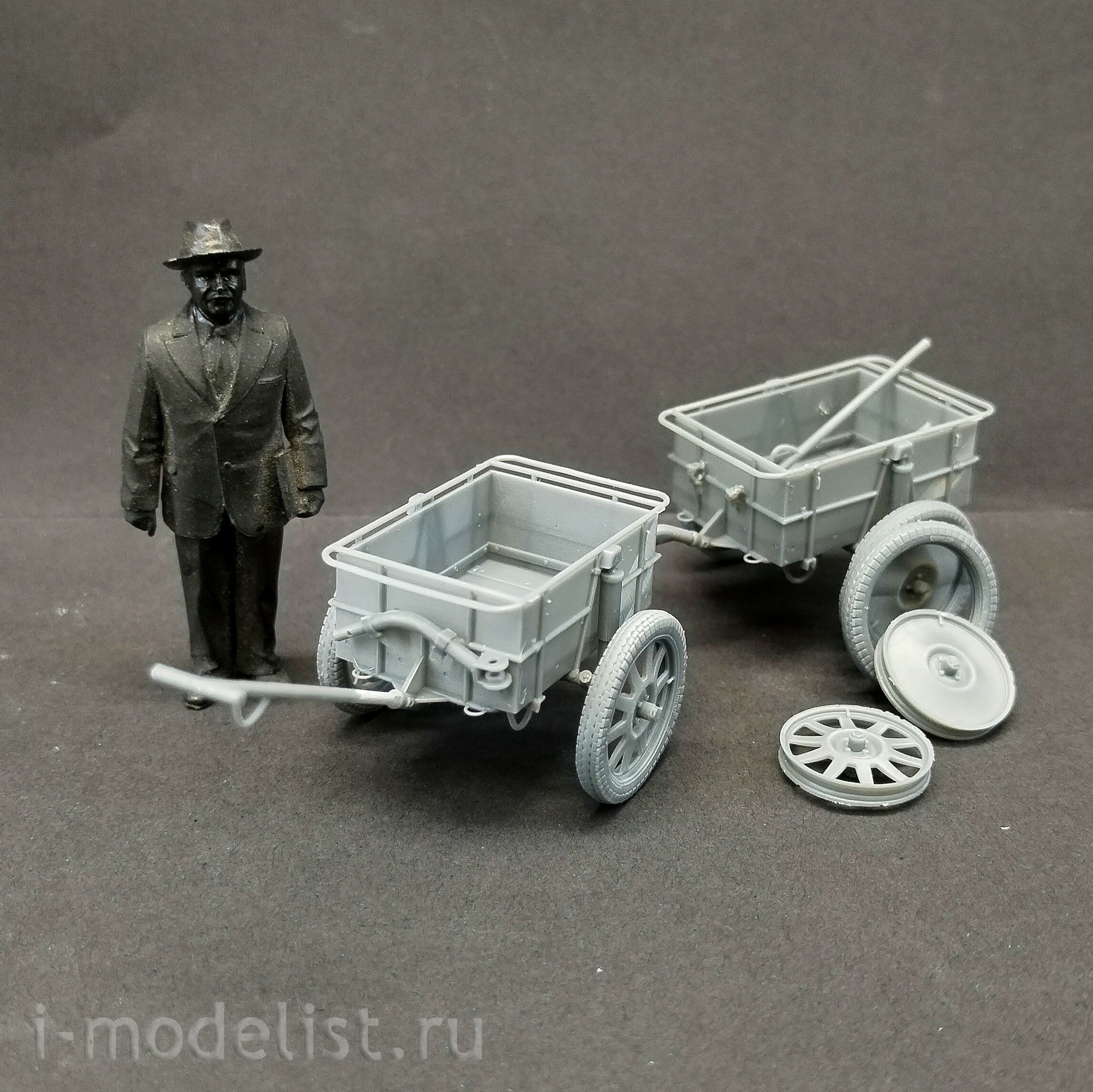 В наборе 2 тележки, дышла ручное и автомобильное, два вида колёс.