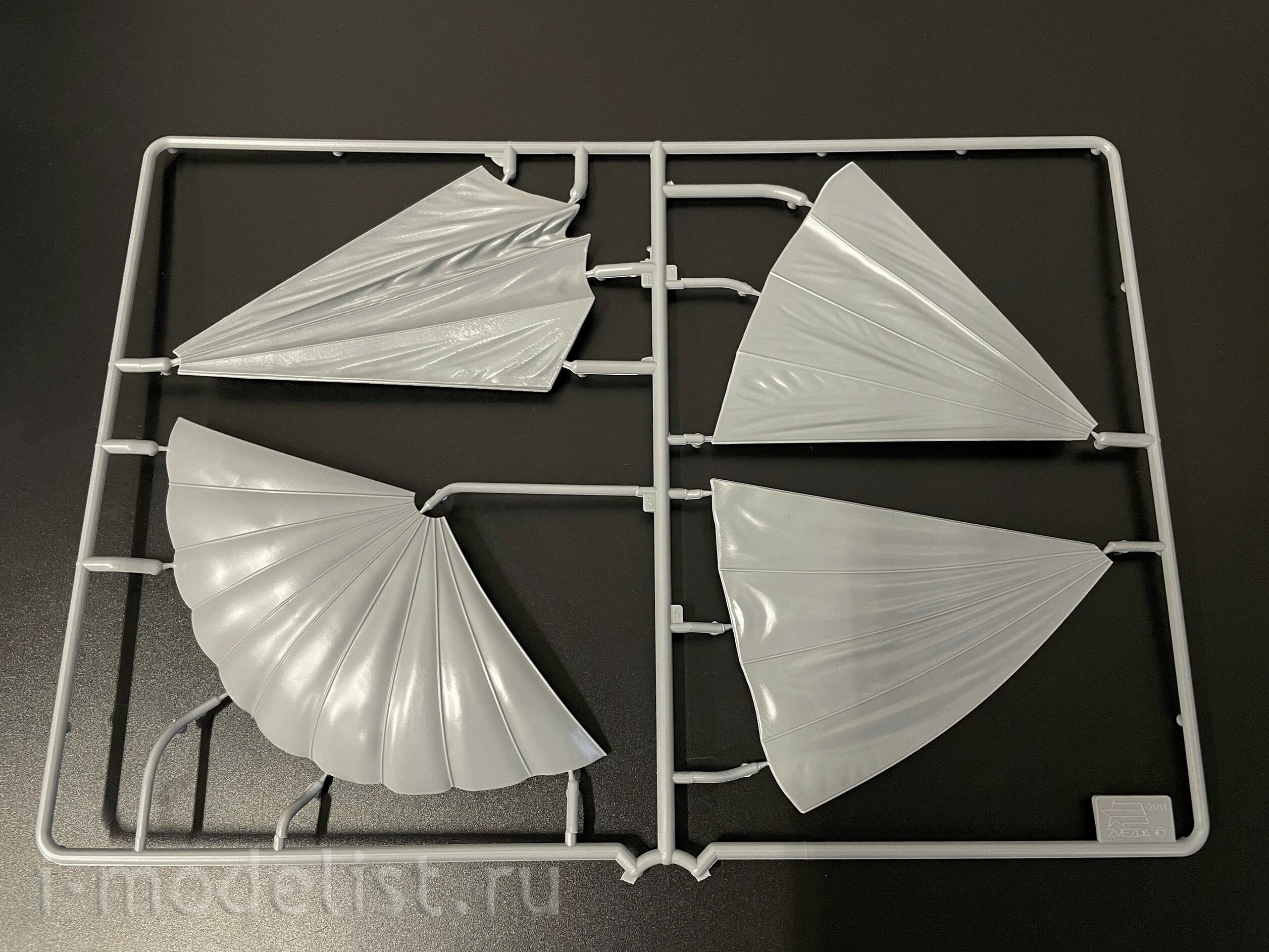 Набор деталей для сборки 5 фигурок парашютистов и одного парашюта.