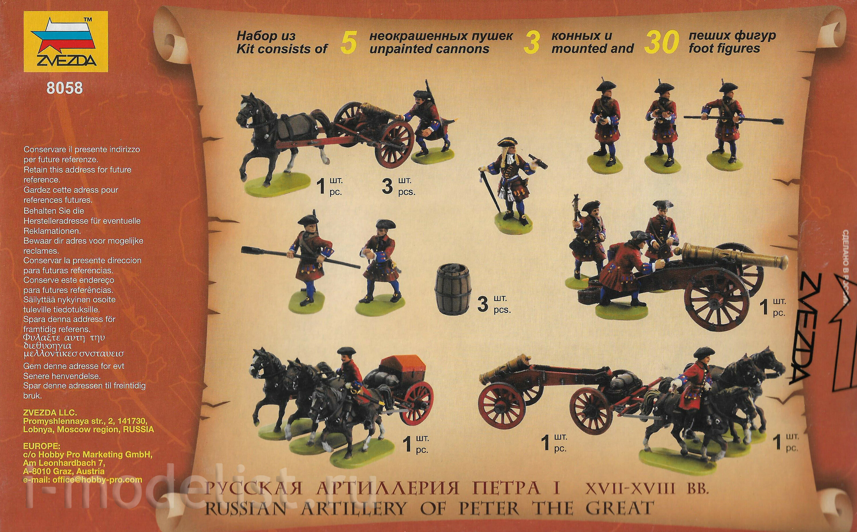 8058 Звезда 1/72 Русская артиллерия Петра I
