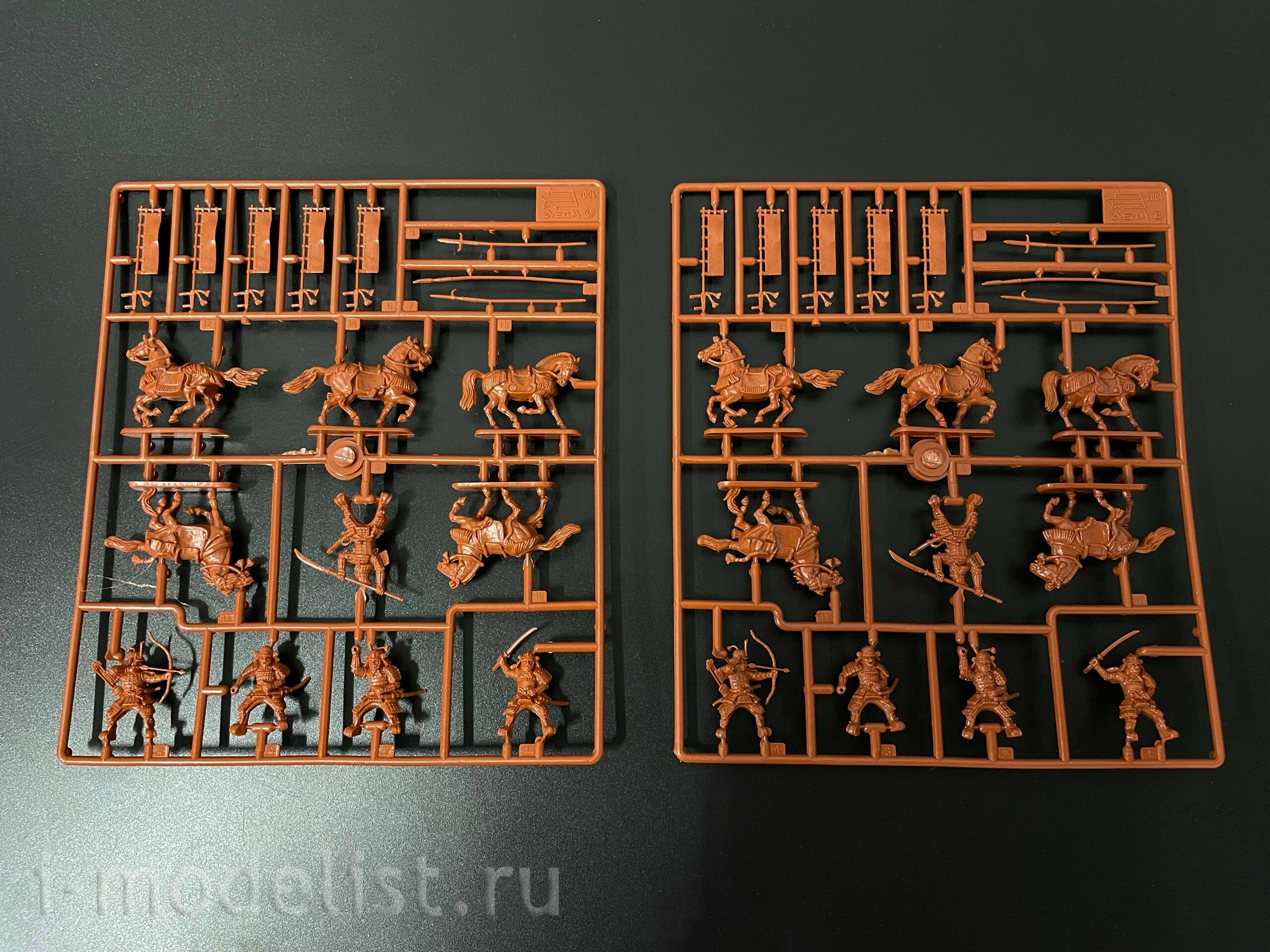 В набор входит 17 неокрашенных конных фигурок самураев.