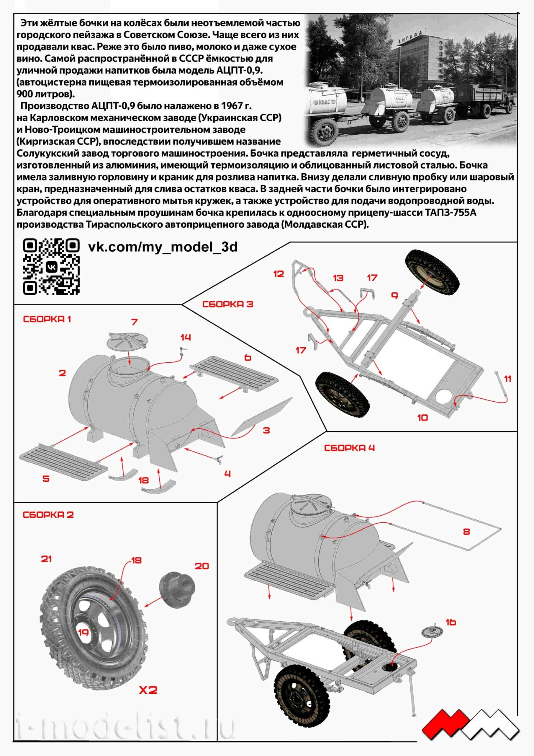 ММ43015 Моя модель 1/43 АЦПТ-0,9 автоцистерна пищевая "КВАС" с фигурой продавщицы