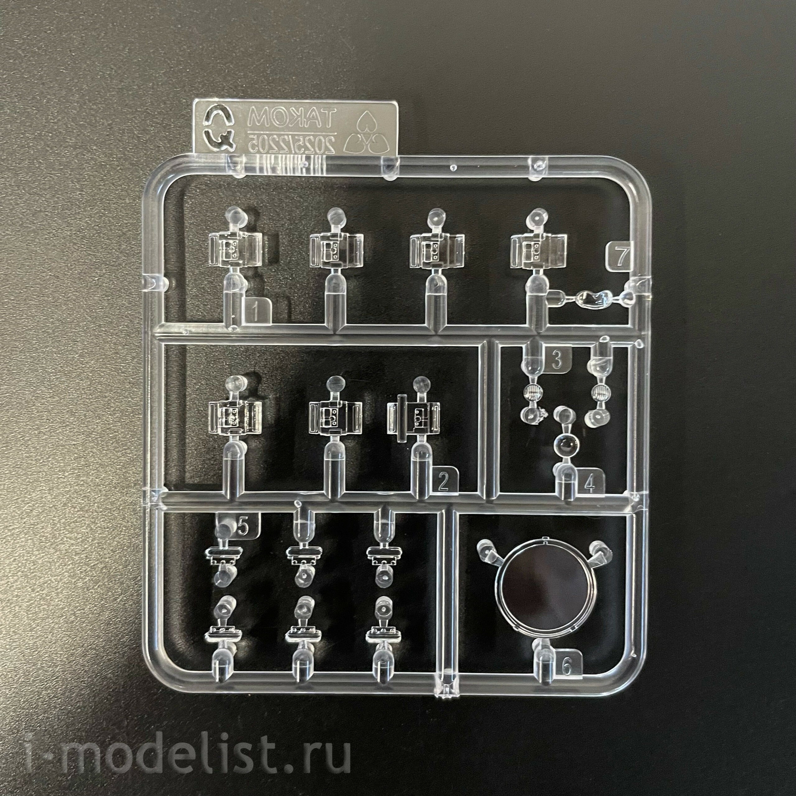 - Люки экипажа предусматривают два варианта сборки: в зафиксированном открытом или закрытом положении. Детали остекления триплексов и оптика фар выполнены из прозрачного пластика.