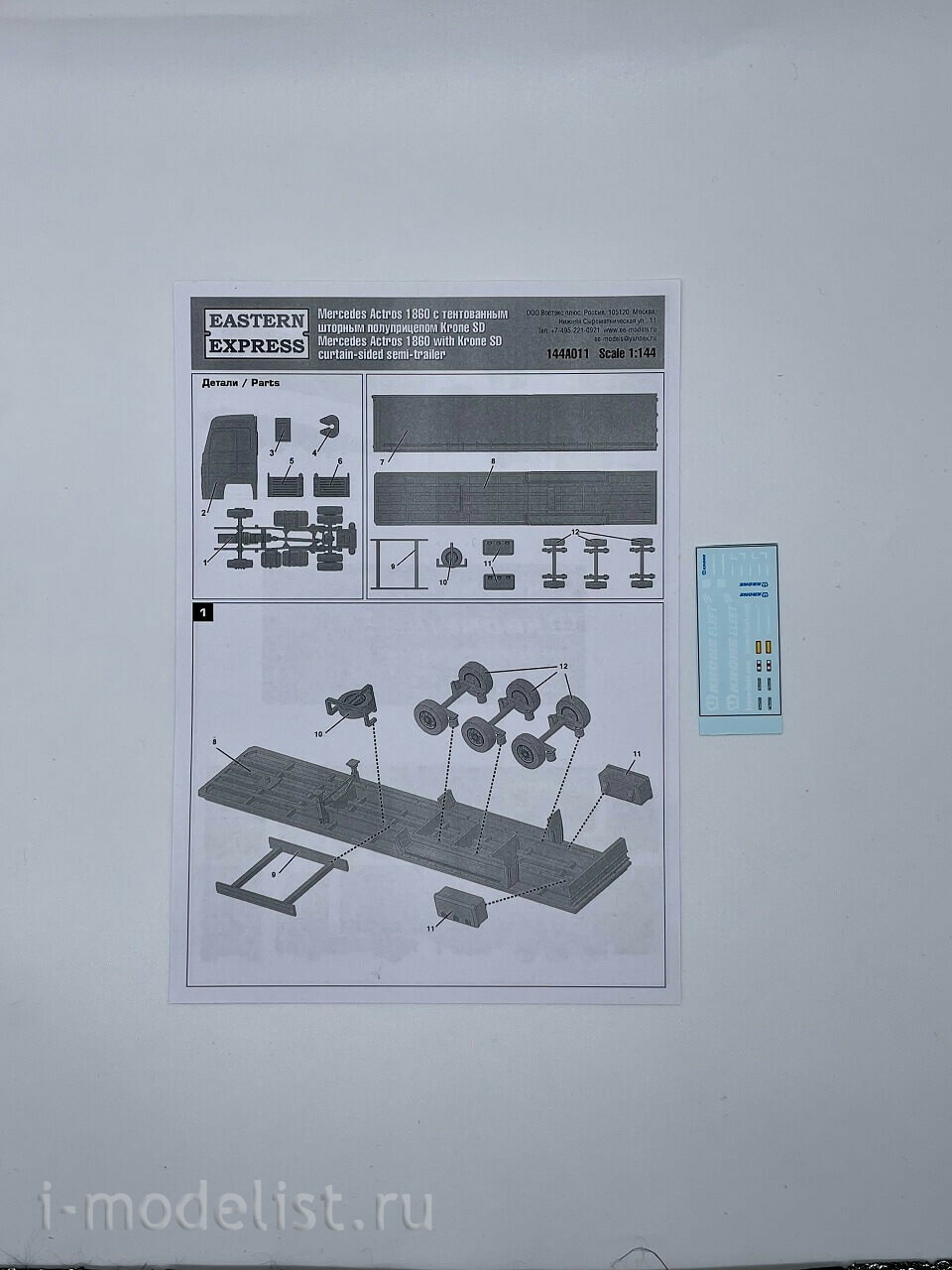 144A011 Восточный экспресс 1/144 Mercedes Actros 1860 с тентованным шторным полуприцепом Krone SD