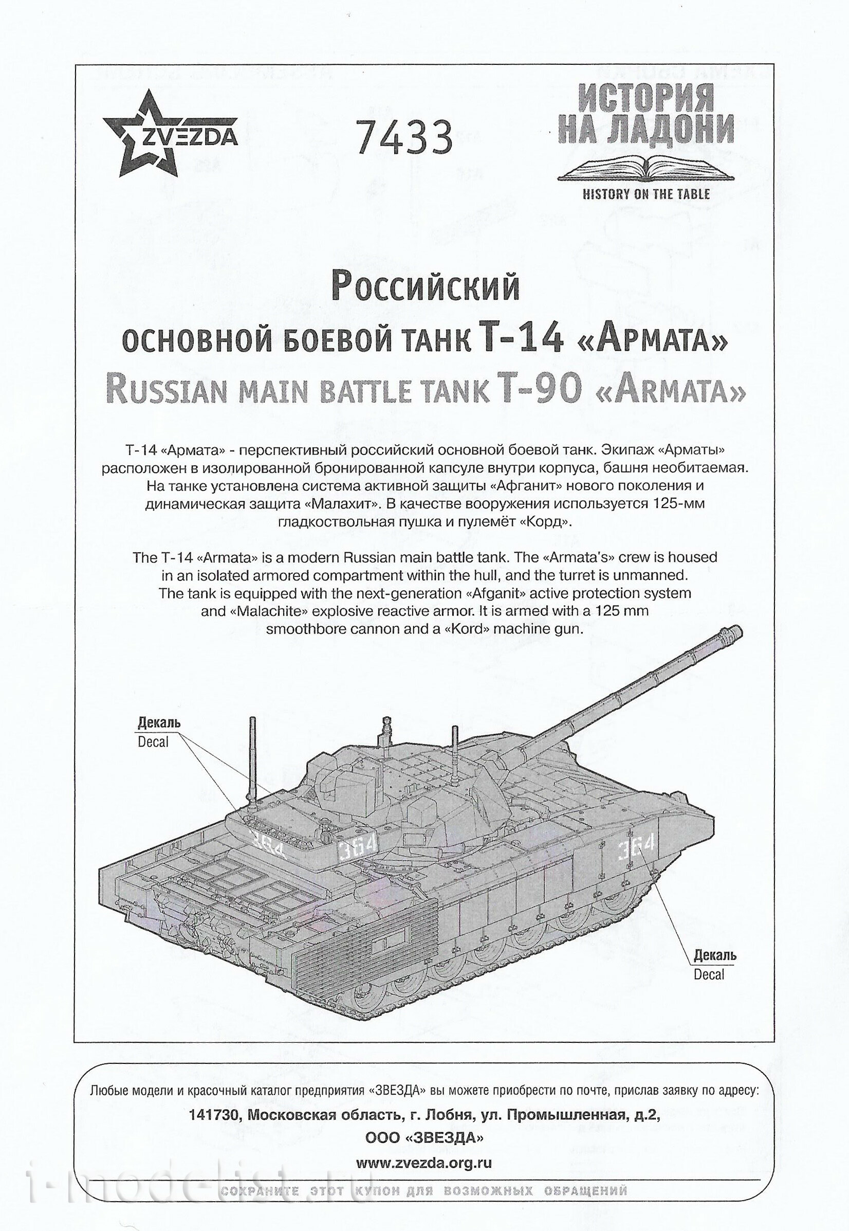 7433 Звезда 1/100 Российский основной боевой танк Т-14 «Армата»