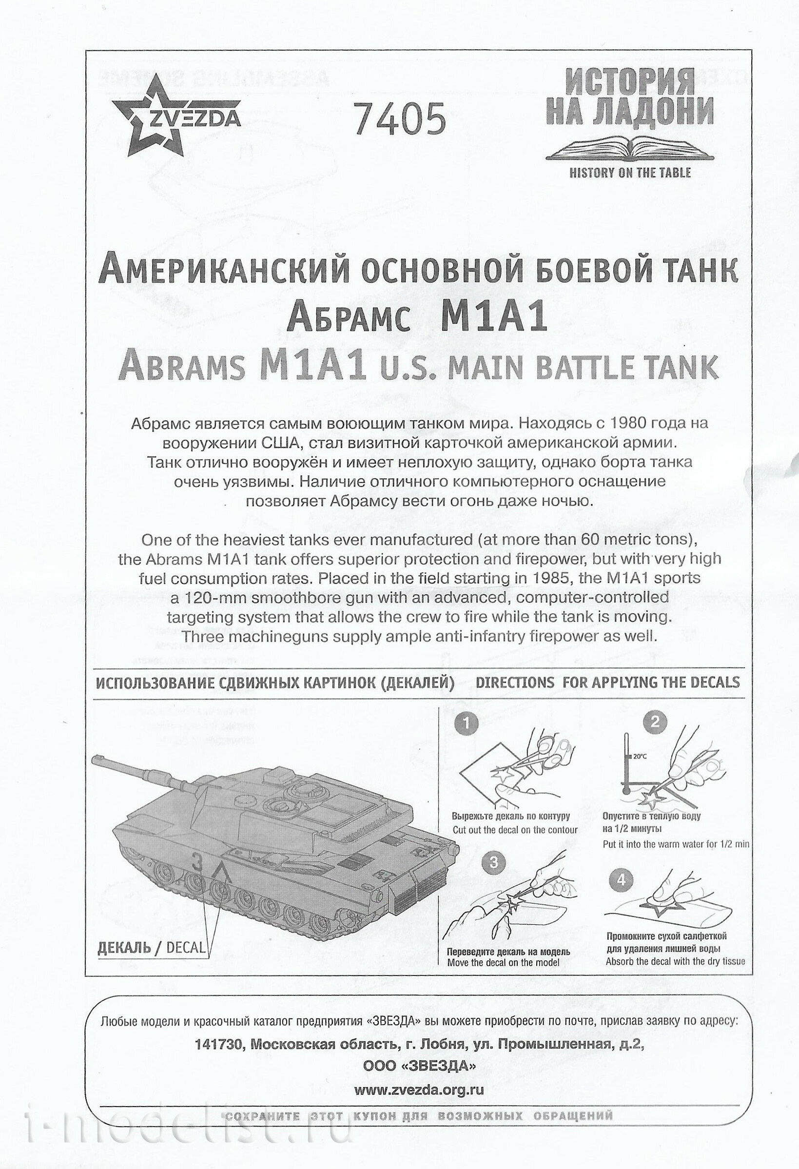 Историческая справка: Абрамс является самым воюющим танком мира. Стоя с 1980 года на вооружении США, стал визитной карточкой американской армии. Танк отлично вооружён и имеет не плохую защиту, однако борта танка очень уязвимы. Наличие отличного компьютерного оснащение позволяет Абрамсу вести огонь даже ночью.