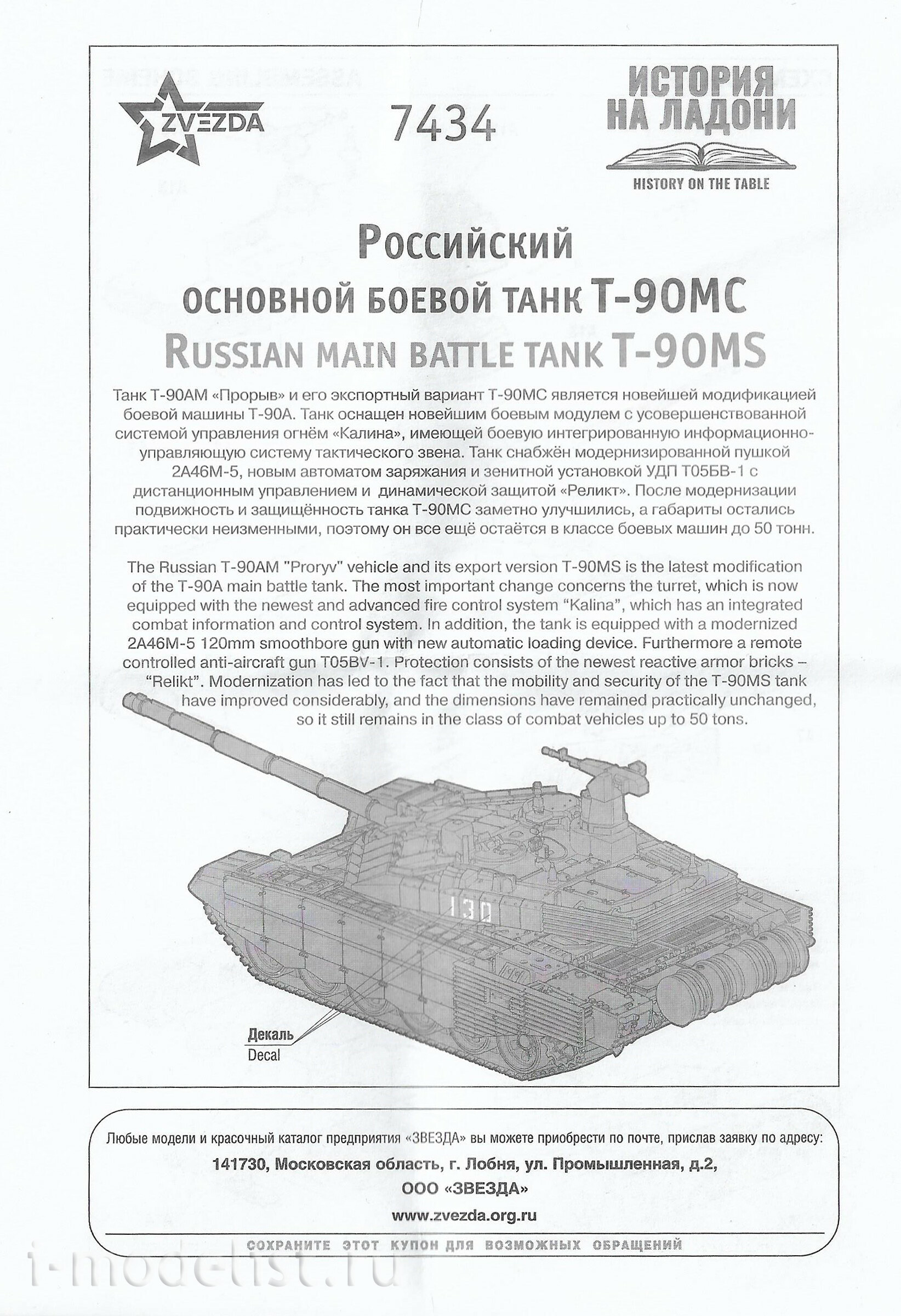 Историческая справка: Впервые макетный образец Т-90МС "Тагил" с башней новой конструкции был продемонстрирован 7 декабря 2009 г. премьер-министру В.В. Путину перед совещанием о развитии российского танкостроения, которое прошло в «танковой столице» России – городе Нижний Тагил. Макет представлял собой стандартную платформу Т-90С с установленной на ней башней принципиально новой конструкции. Модернизация коснулась всего комплекса характеристик Т-90С и позволила значительно повысить его боевые и эксплуатационные возможности. Второй закрытый показ Т-90 МС состоялся в рамках выставки "Оборона и защита" в июле 2010 г.