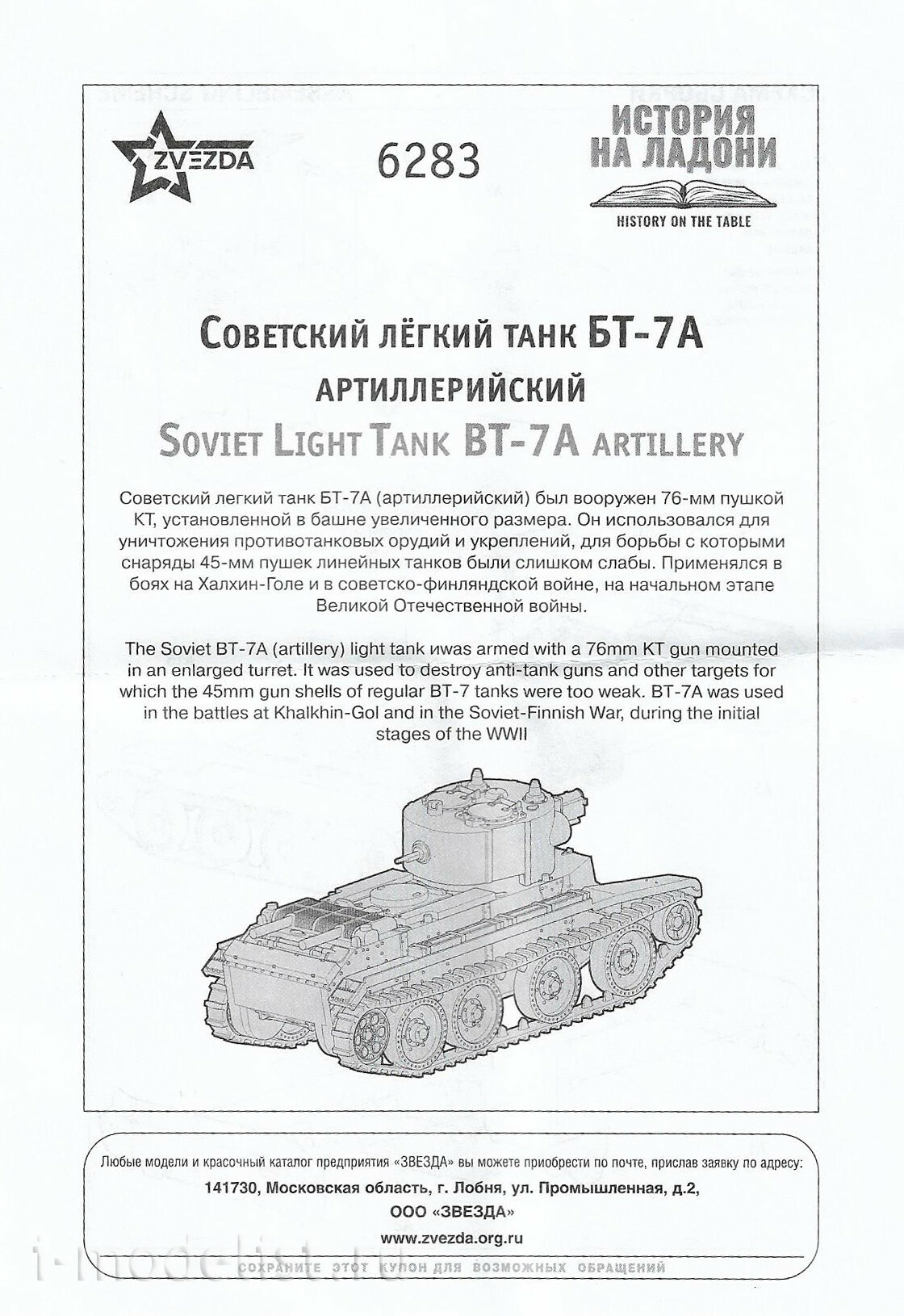 6283 Звезда 1/100 Советский легкий танк БТ-7А артиллерийский