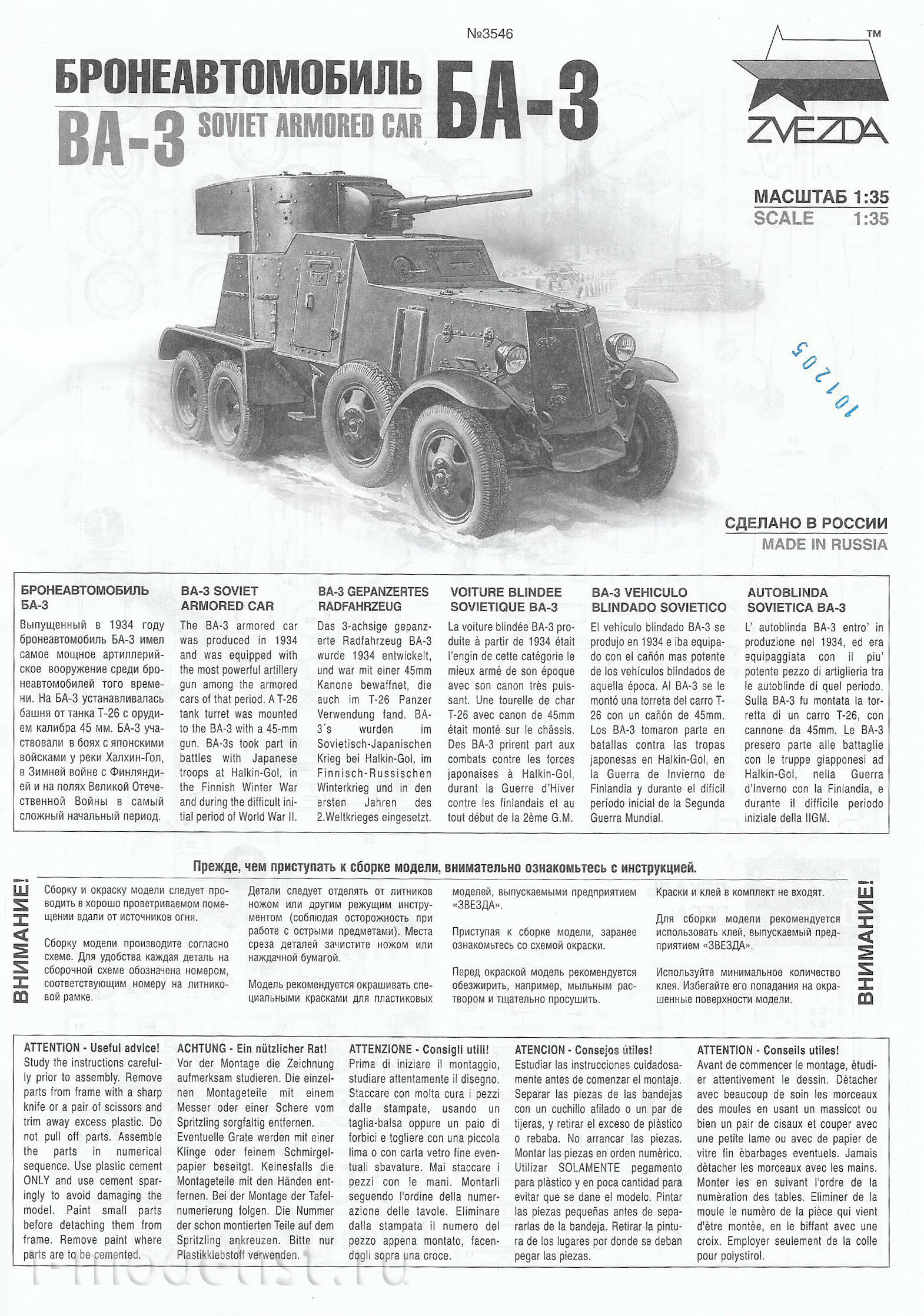 3546 Звезда 1/35 Бронеавтомобиль Ба - 3 обр. 1934 г.