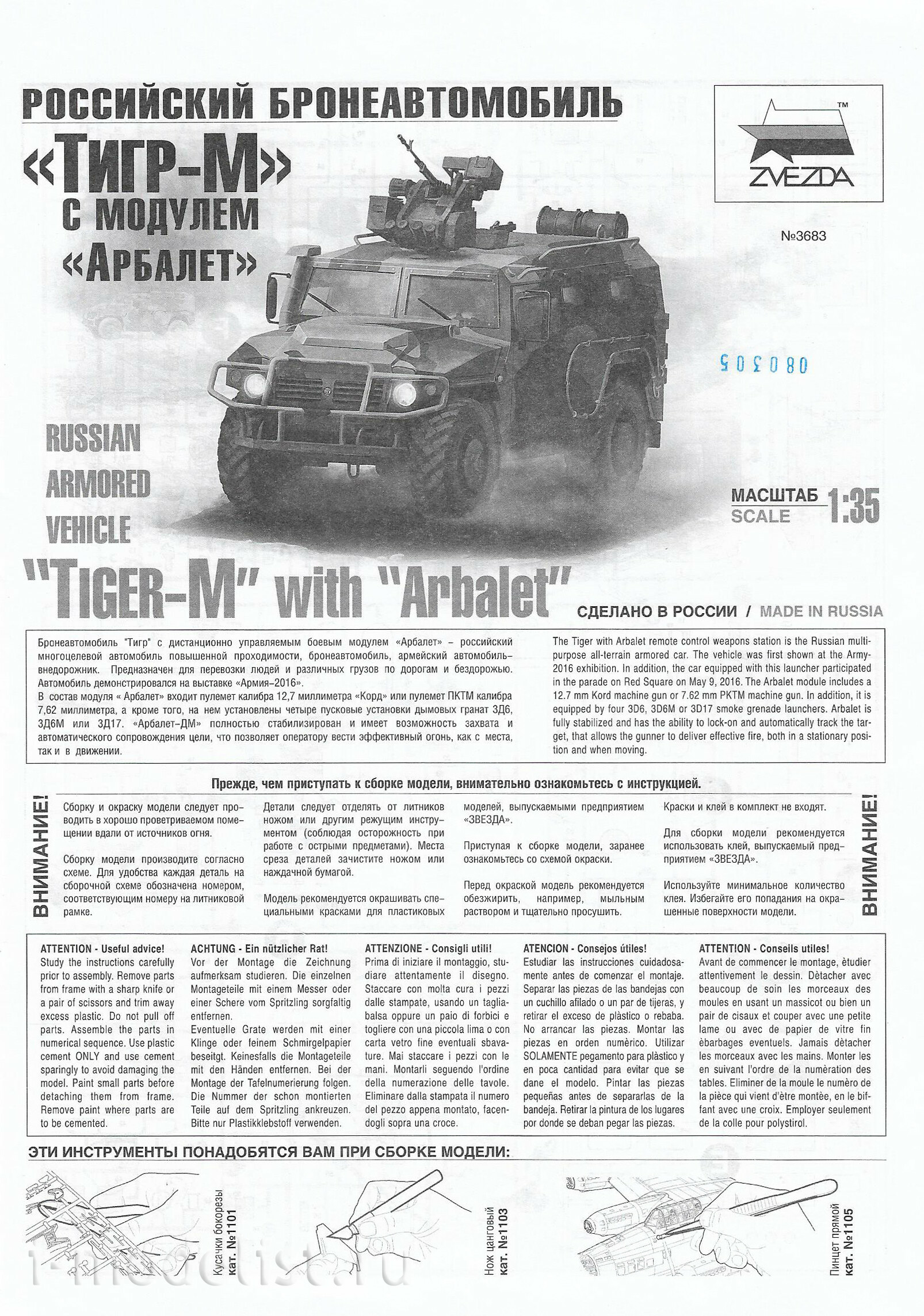 3683 Звезда 1/35 Российский бронеавтомобиль ГАЗ «ТИГР-М» с модулем «Арбалет»
