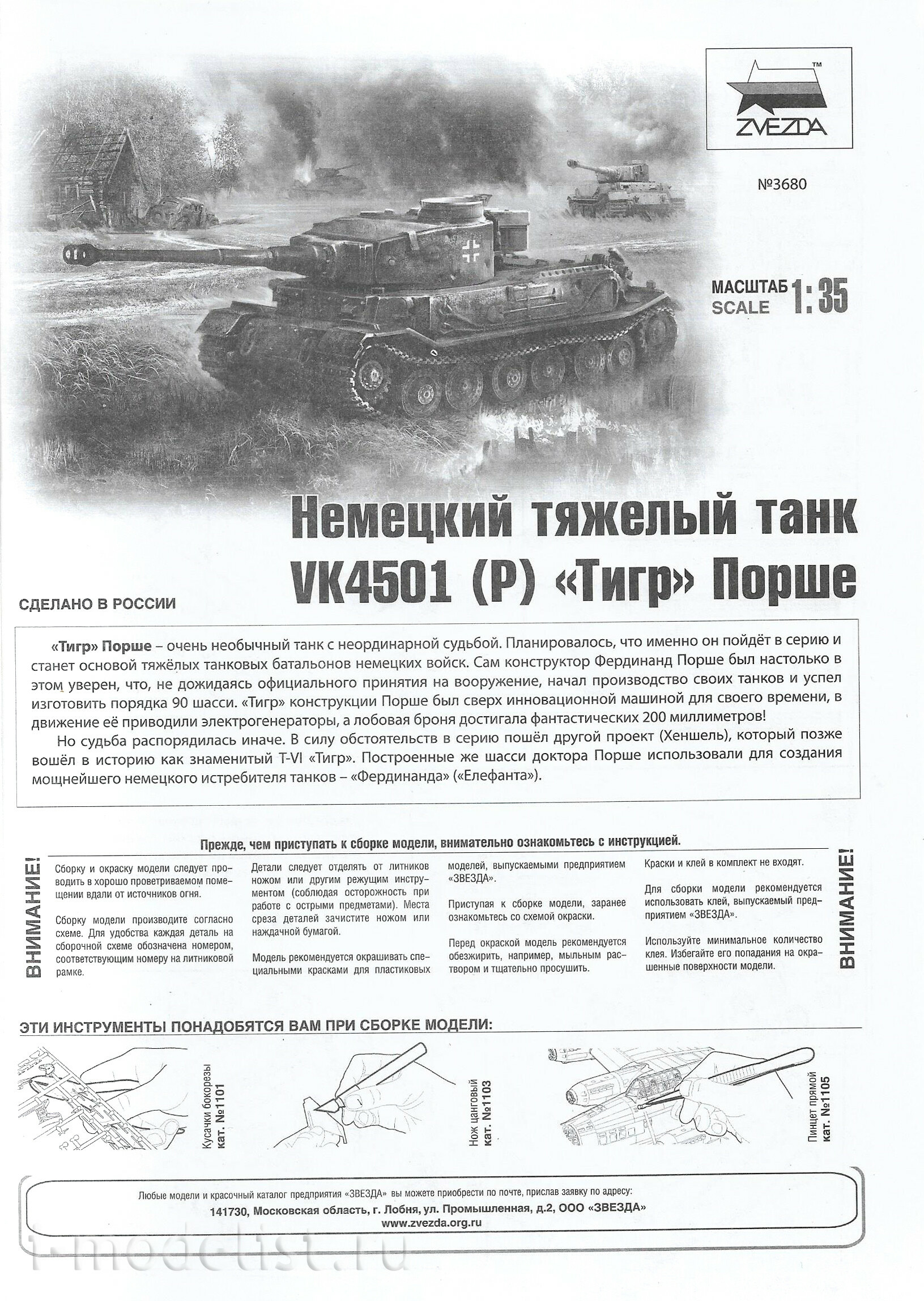 3680 Звезда 1/35 Немецкий танк Тигр "Порше"