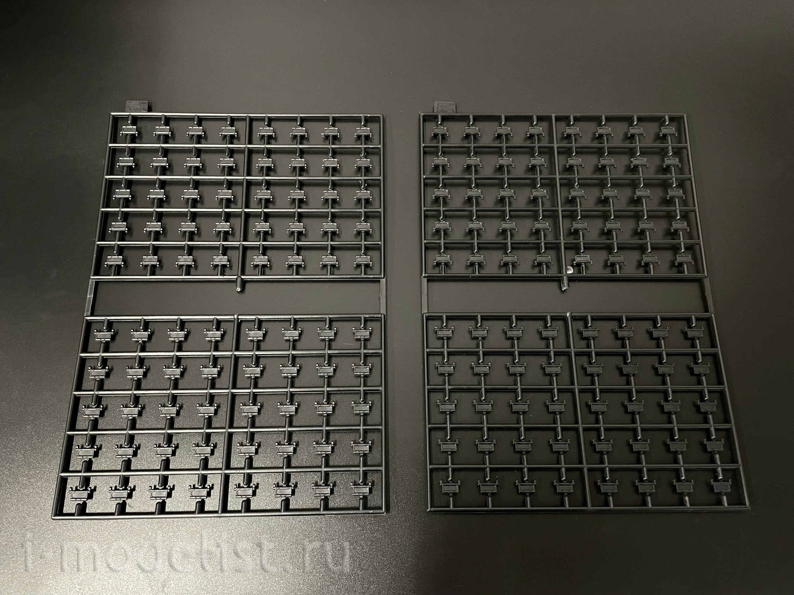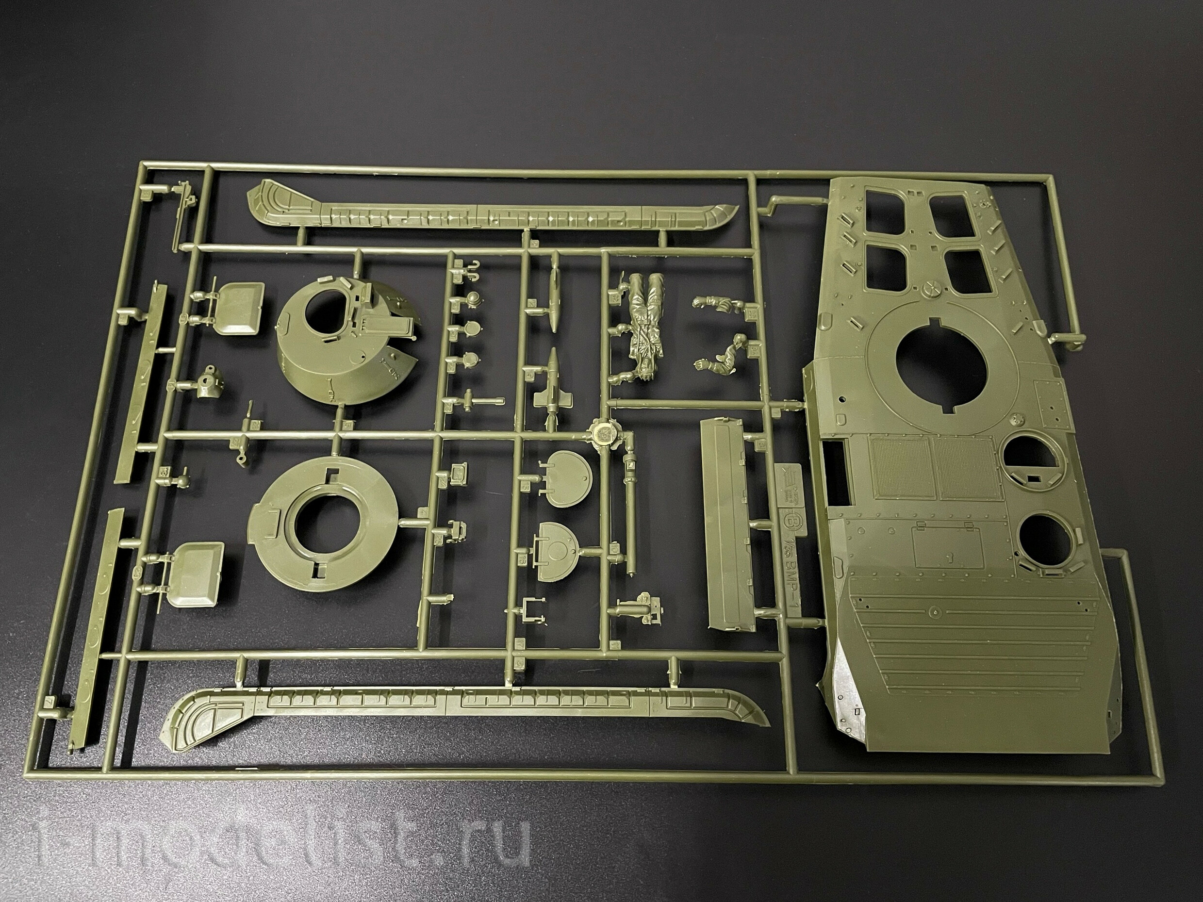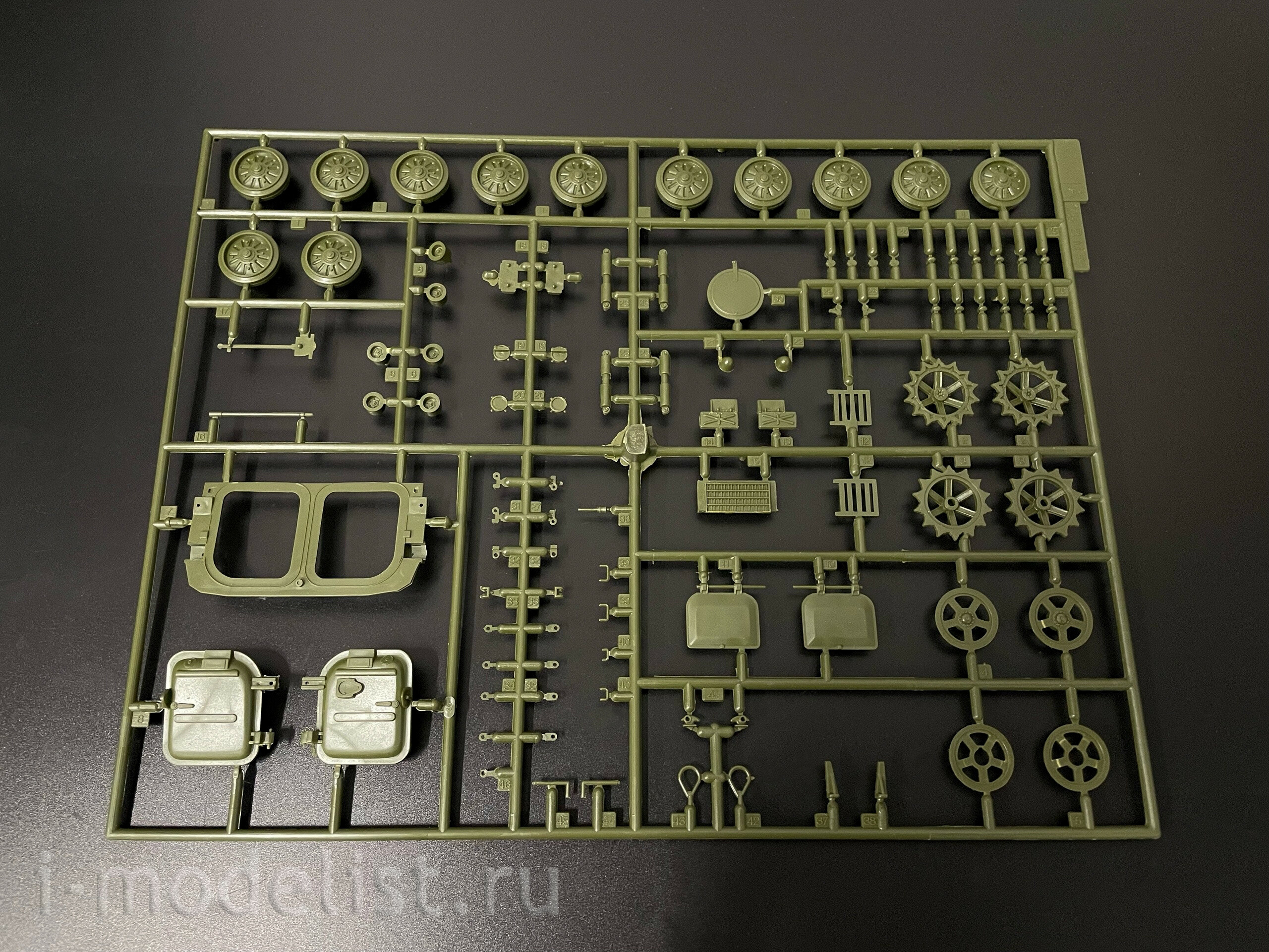 Набор деталей из пластмассы для сборки одной модели танка.