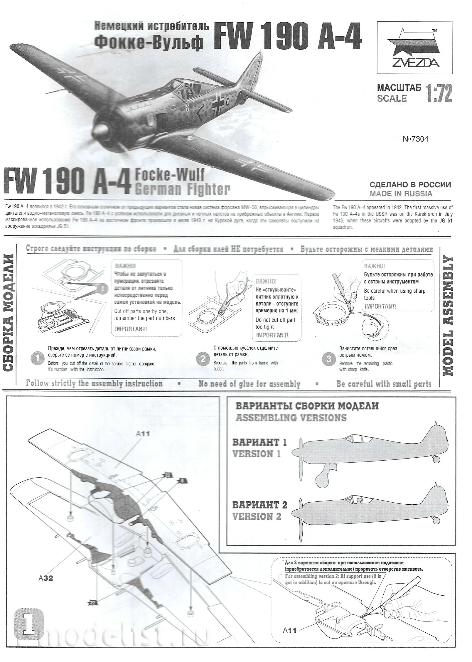 7304 Звезда 1/72 Немецкий истребитель Фокке-Вульф FW-190 A4