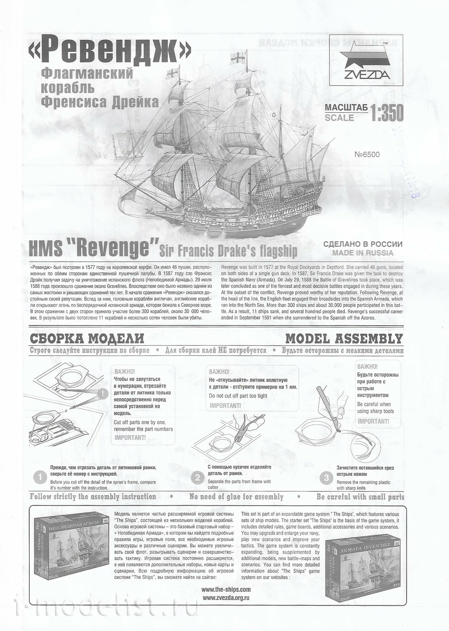 Историческая справка: Флагманский корабль Френсиса Дрейка Ревендж, известен широкой аудитории прежде всего по участию в разгроме Непобедимой армады Испании. Модель собирается легко и просто без использования клея. Имеет два вида подставок: гексагональную для игроков и демонстрационную для моделистов. "Ревендж" был построен в 1577 году на королевской верфи. "Ревендж" имел 46 пушек, расположенных по обеим сторонам единственной пушечной палубы. В 1587 году сэр Фрэнсис Дрейк получил задачу на уничтожение испанского флота (Непобедимой Армады). 29 июля 1588 года произошло сражение около Gravelines. Впоследствии оно было названо одним из самых жестоких и решающих сражений тех лет. В начале сражения "Ревендж" оказался достойным своей репутации. Вслед за "Ревендж", головным кораблем англичан, английские корабли открывают огонь по беспорядочной испанской армаде, которая бежала в Северное море. В этом сражении с двух сторон приняло участие более 300 кораблей, около 30.000 человек. В результате было потоплено 11 кораблей и несколько сотен человек были убиты.