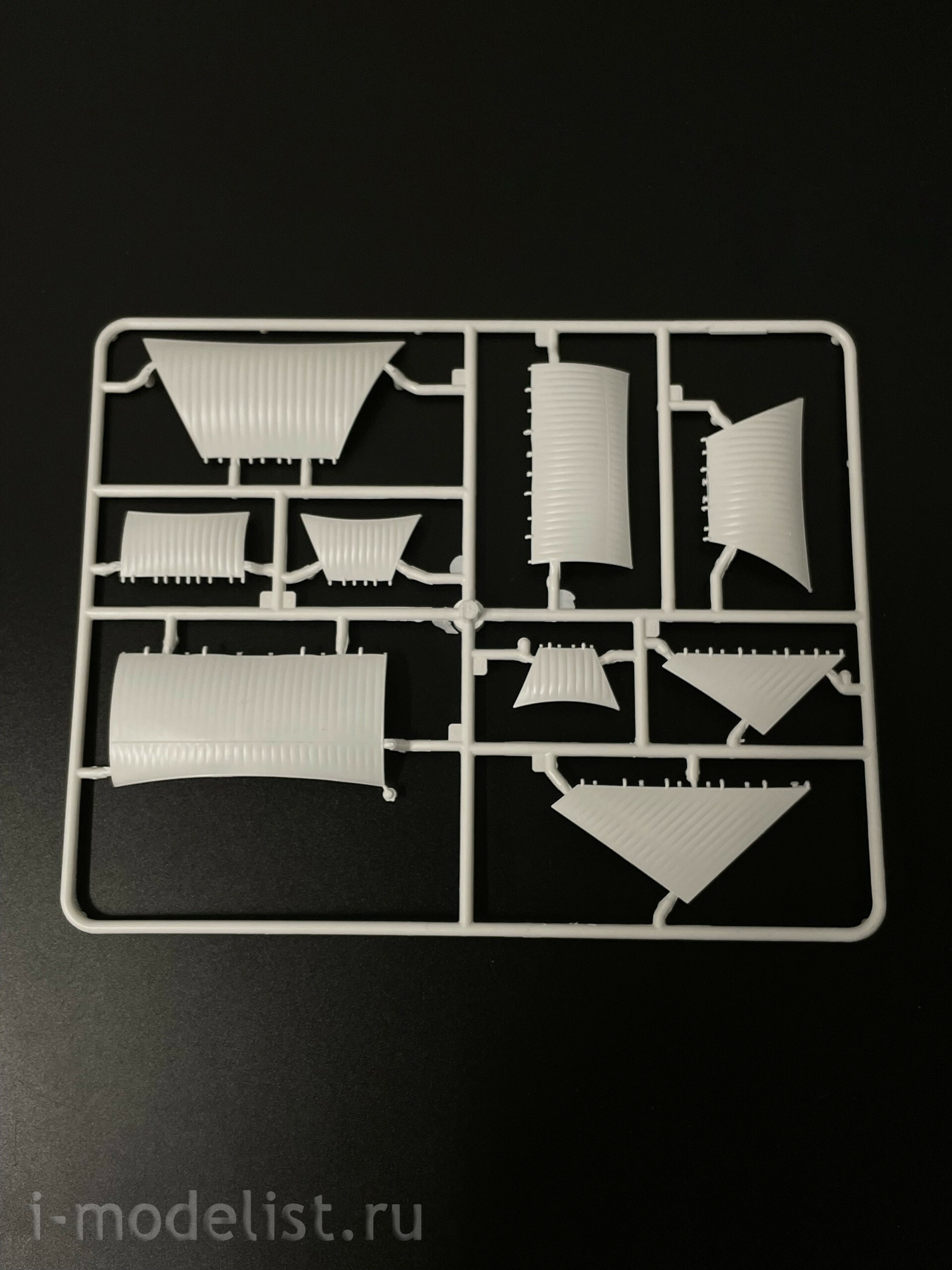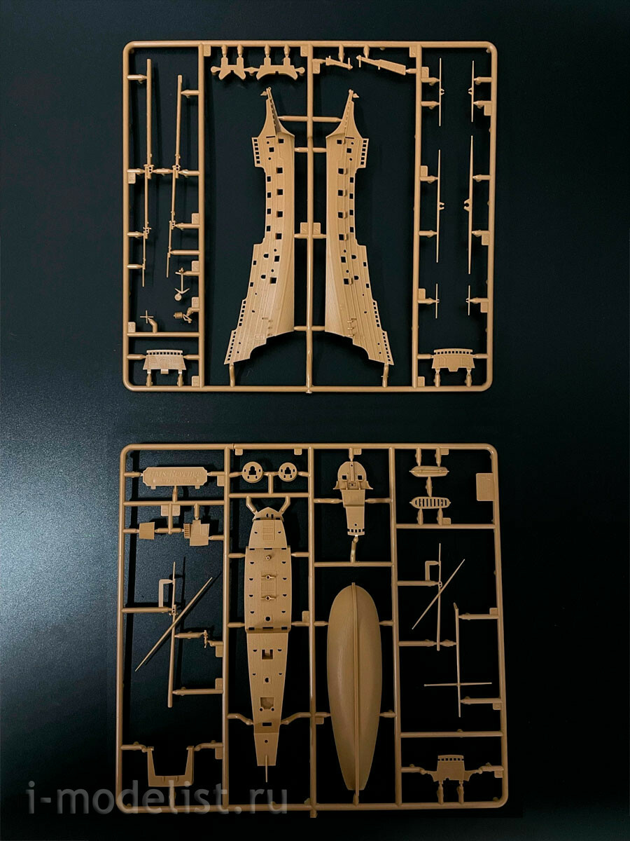 Набор деталей из пластмассы для сборки одной модели корабля.