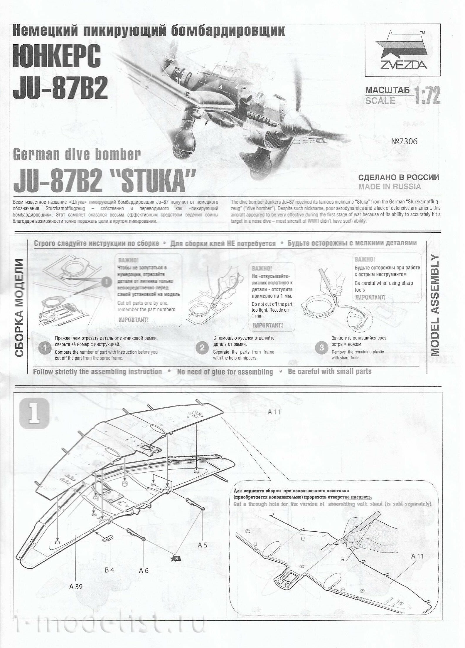 7306 Звезда 1/72 Немецкий пикирующий бомбардировщик Юнкерс Ju-87B2