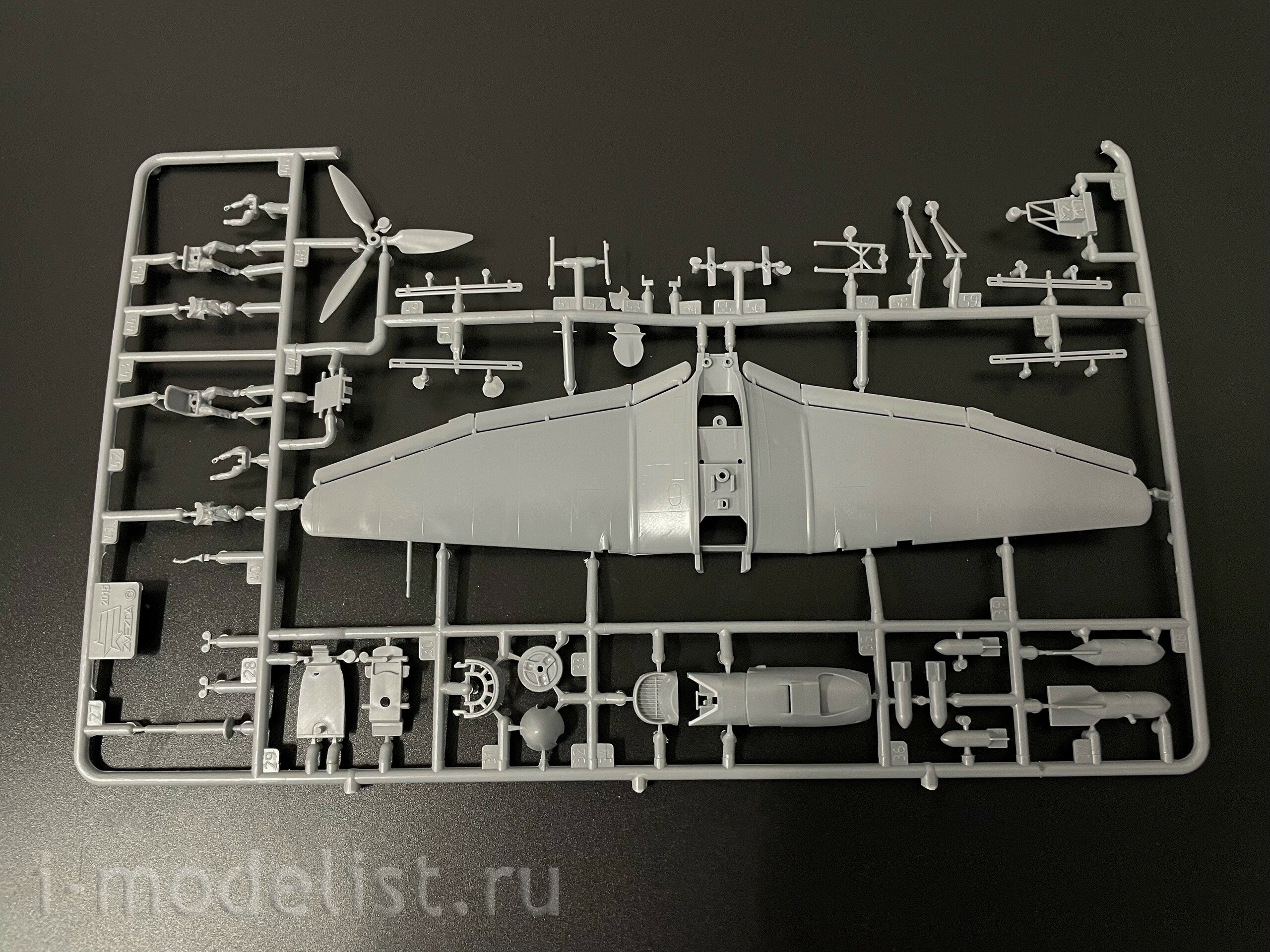 Историческая справка: Всем известное название «Штука» пикирующий бомбардировщик Ju-87 получил от немецкого обозначения Sturzkampfflugzeug – собственно и переводимого как «пикирующий бомбардировщик». Этот самолёт оказался весьма эффективным средством ведения войны благодаря возможности точно поражать цели в крутом пикировании. Набор деталей из пластмассы для сборки одной модели самолета. Краски продаются отдельно от набора.