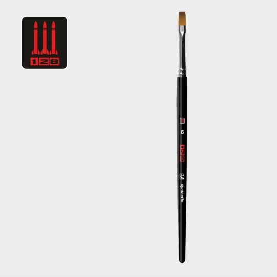 1281S25-6 128 Кисть синтетика имитация колонка / плоская 4 / ручка коротк. черная матовая / белая обойма