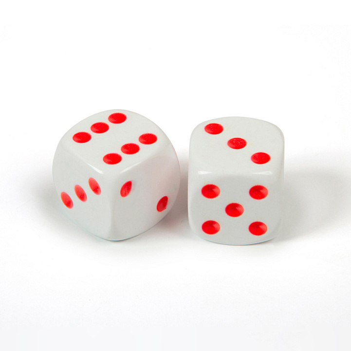 1216 Звезда Набор из 2 кубиков D6, 16мм. Белый с красными точками в блистере