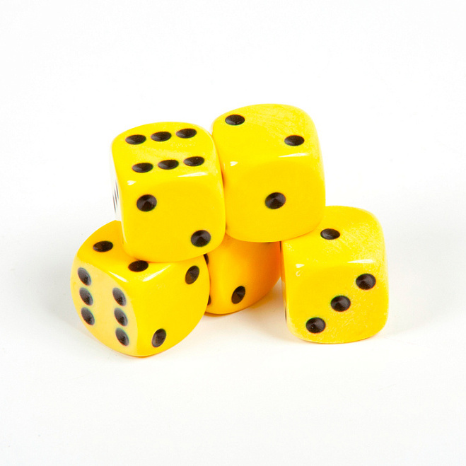 1225 Звезда Набор из 5 кубиков D6, 16мм. Желтый с черными точками в блистере