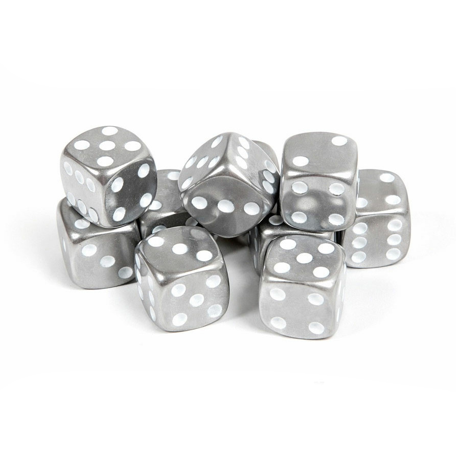 1254 Звезда Набор из 10 кубиков D6, 10 мм. Серебряный с белыми точками в блистере